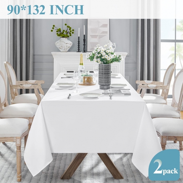 • Durable and Easy to Care: High quality polyester material makes the white tablecloth is durable, stains will not invade, and does not deform or shrink, while eliminating the problem of hand washing, machine wash and dry in cold water