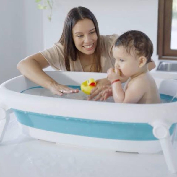 Bathing baby can be a pain in the splash with all the gear you need for every stage they go through. The Carestino foldable baby Bath Tub is the one-and-done solution for bathing newborns to toddlers. A mildew-resistant, color-coded bath pad cradles newborns on the aqua side, and flips to support + secure babies who are learning to sit up. Remove the pad completely for toddlers to give them space to soak and splash. Hang the bath tub to dry thanks to its built-in hook. It's a bath made in heaven!