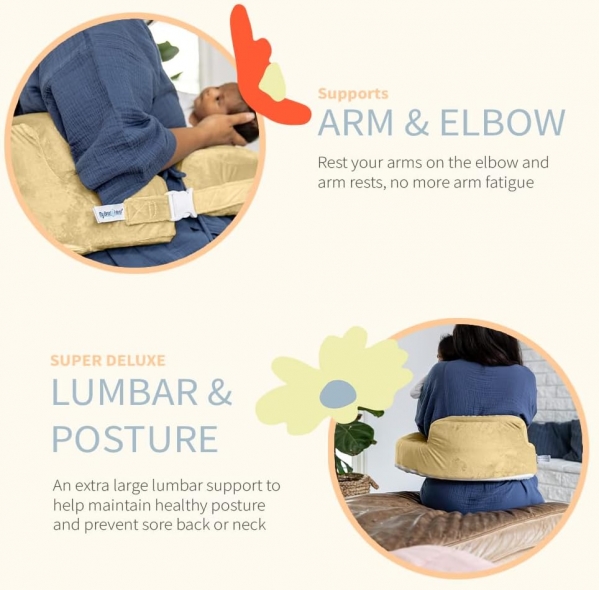 Rent Baby Gear INCLUDING My Brest Friend Super Deluxe Nursing Pillow for Breastfeeding and Bottlefeeding with Lumbar Support, Convenient Pocket and Removable Slipcover, Gold Super Deluxe Gold Nursing Pillow | BabyQuip