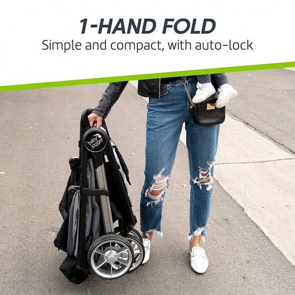 This stroller has a signature one hand compact fold. There is also an extra large storage basket (accessible from the front as well as the rear) and a UV50 canopy with peek a boo window.