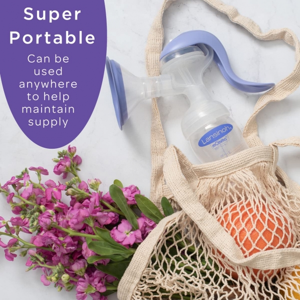 With this portable hand pump breastfeeding moms can comfortably and conveniently pump on the go. The Lansinoh Manual Pump is lightweight and portable for an easy experience at home, at work, or traveling. Each manual Lansinoh pump comes with 2 sizes of our ComfortFit Flange (standard 25mm and large 30.5mm), an attached breastmilk storage bottle, a NaturalWave Slow Flow Nipple, a bottle holder stand, an extra valve and lid, and a hand breast pump manual with instructional diagrams. Lansinoh has been helping moms and babies get a good start to their new lives for over 35 years.