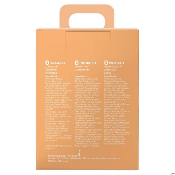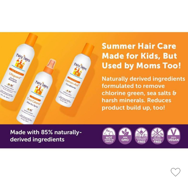 A sun, beach and pool essential - The Fairy Tales Sun & Swim line is specially formulated for treatment of kids summertime hair care. Hydrate, condition and detangle dry, brittle, sun-worshiped hair especially during the summer months.