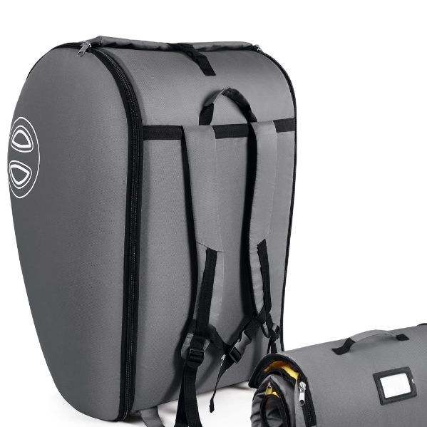 Convenient Doona package that includes the incredible Doona stroller/car seat, a padded back and a snap on storage bag to put your baby stuff and have it accessible.