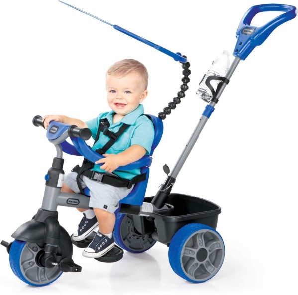 PRODUCT DESCRIPTION Little Tikes 4-in-1 Trike in color RED grows with your child! 4 Stages to grow with child: Parent Push Trike, Learning, Developing and Kid Powered Trike. Adjustable seat to fit almost any size child. Adjustable, detachable push handle. 5-point seat belt harness and protective safety bar. FROM THE MANUFACTURER This Deluxe 4-in-1 trike was designed with the parent and child in mind to increase comfort, convenience and ease of use. 4 Stages to grow with your child: Guided, Learning, Developing and Independent.