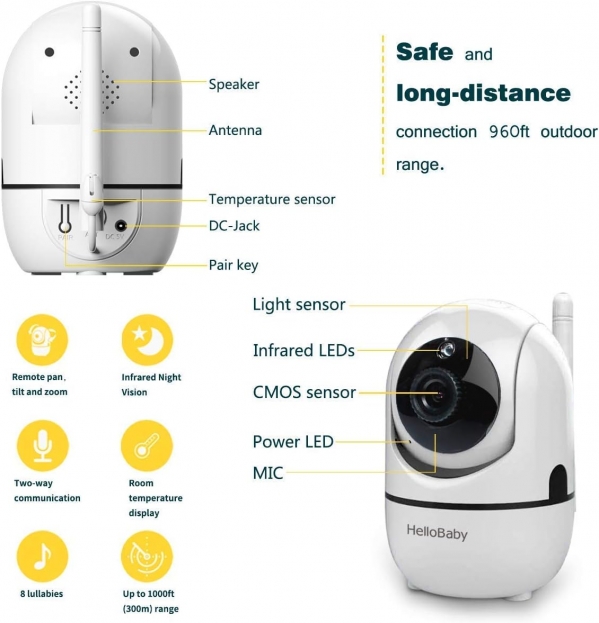 This additional camera expands your existing HelloBaby monitor system, making it easy to monitor multiple children or spaces at once. Whether you have siblings in different rooms or want coverage of both a sleep space and play area, this gives you added flexibility and peace of mind.
