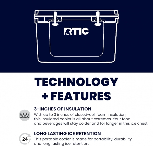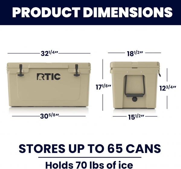 RTIC 65 QT Hard Cooler Insulated Portable Ice Chest Box for Beach