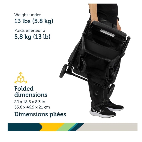 • Weighs under 13 lbs and folds to a size of 22 x 18.5 x 8.3”
