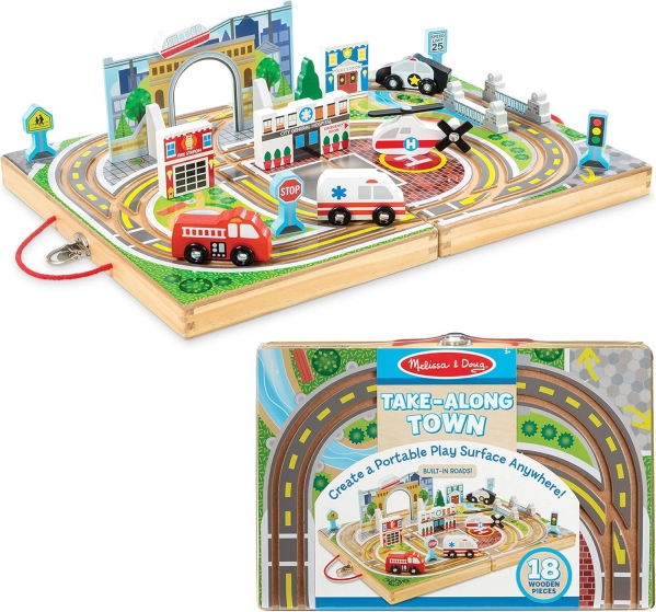 Melissa and Doug take along town toy. Actual town scene may vary depending on availability.