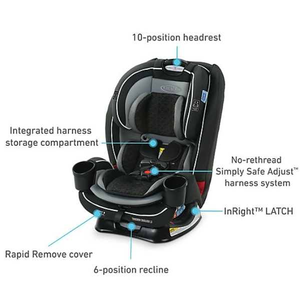 • No-Rethread Simply Safe Adjust Harness System allows the headrest and harness to adjust together in one motion