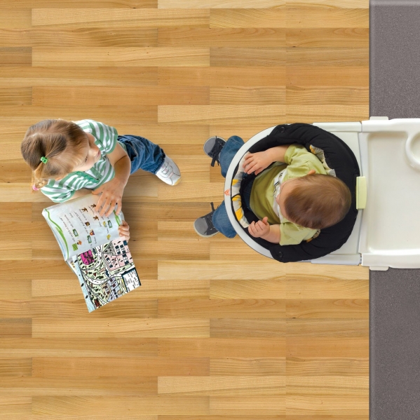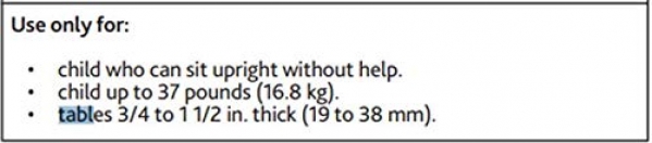 Chicco's 360-degree rotating hook-on chair has an innovative seat that locks in 6 positions for happy and interactive mealtimes. Face baby toward mom for one-on-one feeding. Face baby out to keep him happy and let others entertain him. Face him forward toward the table for regular mealtimes with snap-on tray. Snap on serving tray provides a neat and clean surface for meals at home or away. Washable fabric seat pad and dishwasher-safe tray make clean up easy. Rubber grips clamps to table quickly and securely negotiating table skirts up to 5.5" thick and the yellow highlighted buttons won't leave you searching for how to adjust the chair.