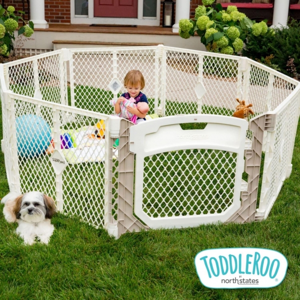 Toddleroo by North States Superyard Ultimate 8 Panel Baby Play Yard, Made in USA: Safe Play Area, Indoors/Outdoors, Freestanding. 6.5 feet Corner to Corner