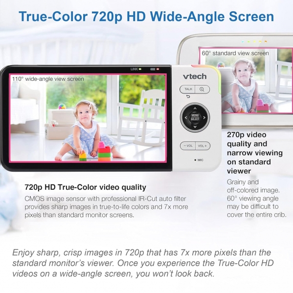 VTech VM818HD 5" Video Baby Monitor, 720p HD, Night Light, 2-Way Talk, 1000ft Range, White