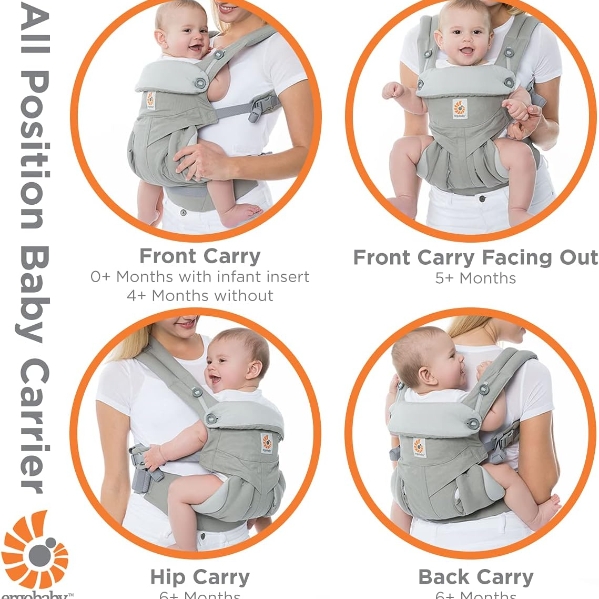 • Various Positions: face baby in or out. Wear on the hip or back as baby grows. All options are available
