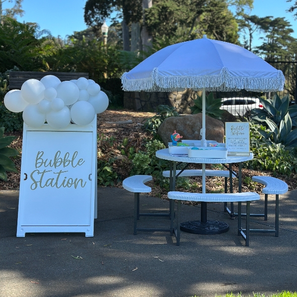 🎉 Add bubbly fun to your next party with our Interactive Bubble Station! Perfect for kids' birthdays, outdoor celebrations, and summertime events, this stylish setup combines fun, function, and aesthetic charm.