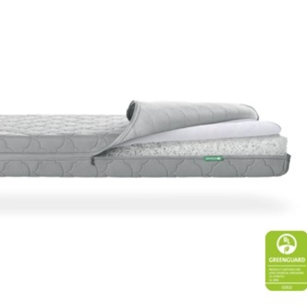 Full size crib with Newton mattress and fitted sheet.