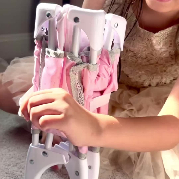 Little ones will love taking their baby doll on all their adventures with the Hopscotch Lane My Baby Doll’s Travel Crib. This adorable on-the-go accessory is inspired by real life infant travel beds. Complete with realistic features like mesh walls and a fabric mattress, it’s the perfect place for kids’ baby dolls to play or nap. When it’s time to go, the durable crib folds for easy storage. The charming light pink design with star accents adds a modern touch to every adventure.