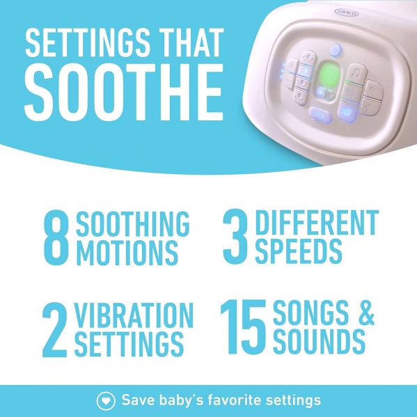 The Graco Sense2Soothe Baby Swing with Cry Detection Technology will keep your little one calm and happy. This swing and rocker features new technology that detects and responds to baby's cries by automatically adjusting the swing's settings. At the sound of a sob, this baby swing activates to immediately start soothing. The Sense2Soothe adjustable baby swing has eight motions that mimic how mothers would naturally move. It includes swing, rock, glide or cradle and two seat directions. The Graco baby soother swing can be used as a portable rocker anywhere throughout the home. It also has three adjustable swing speeds, so you can find the right soothing pace. This baby swing makes it easy to find the right automatic baby swing and vibration settings for your little one. No matter what type of baby swing or rocker you are looking for, Graco has a wide range of options perfect for you and your family.