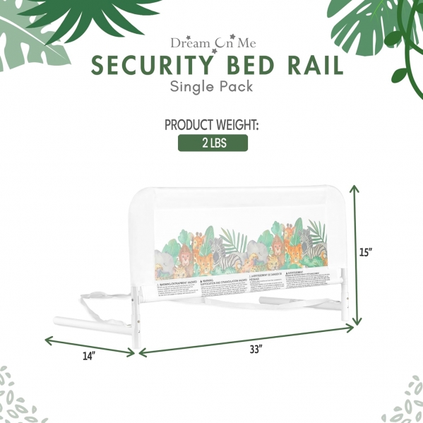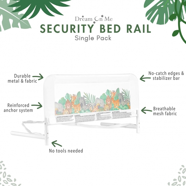 1 Dream On Me Lightweight Mesh Security Adjustable Bed Rail for Toddler, Breathable Mesh Fabric, Suitable for All Types of Beds, Reinforced Anchor System Bed Guard Rail, Jungle Print