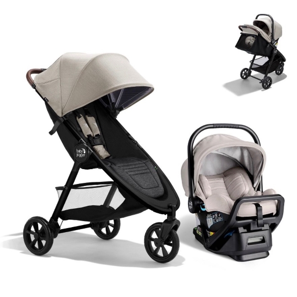 Durability tested. Premium design. One-hand fold. The Baby Jogger city mini GT3 Travel System is built to adventure off the beaten path. Made to conquer city streets and forest trails, the forever air rubber tires and all-wheel suspension let you push the boundaries on your adventures. The signature one-hand, in-seat fold keeps you on the go and enables you and your mini to Adventure Together. The self-standing fold allows for easy storage and helps keep the stroller clean in public places because you won’t have to lay it down. Experience a premium push with a height-adjustable leatherette handlebar, magnetic buckle, and a spacious storage basket. When it's time to lengthen the straps on the harness, simply pull up on the no-rethread harness. Let your little one get comfortable with adjustable calf support and a near-flat reclining seat with the pull of a tab. When your rider wants to sit up, simply push the back of the stroller seat to the upright position—no unnecessary straps or steps. The functional canopy offers three ventilation panels with magnet closures, so you can easily check in on your rider. The included city GO 2 infant car seat provides a safe spot for baby to join in on your adventures, whether in your car, a taxi, or paired with your stroller. This car seat is designed with soft, choiceful, FR-Free Fabrics, which are made without added fire-retardant chemicals, and a quiet and soft Tencel fabric canopy that allows baby to remain undisturbed while on the go.