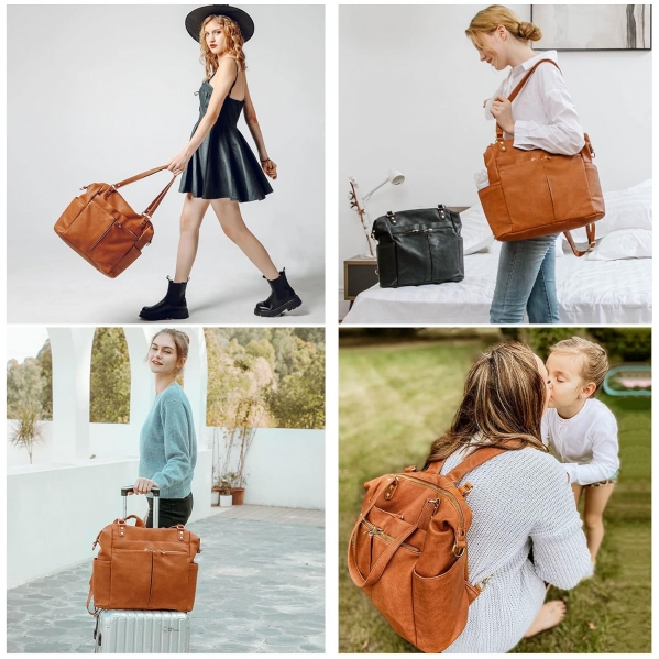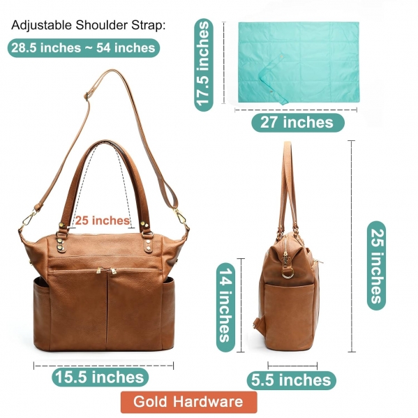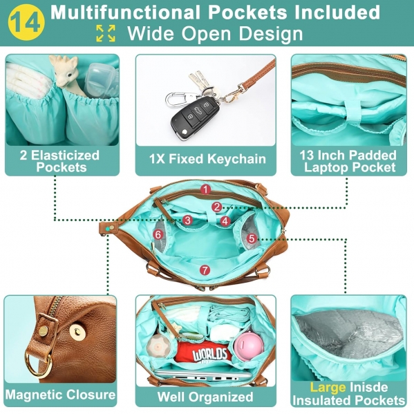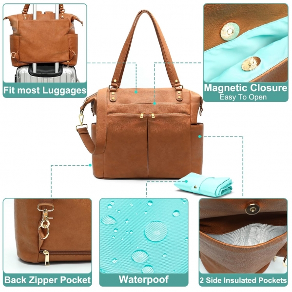 Diaper Bag Tote Mominside Leather Diaper Bag Backpack with 14 Pockets for Mom Dad, Baby Registry Search, Large Travel Baby Bag for Boys Girls with 4 Insulated Pockets, Changing Station-Brown