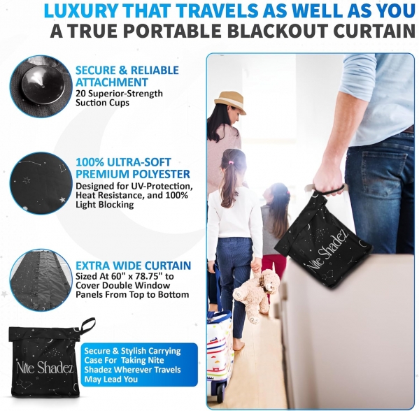 Nite Shadez Rodless Curtains for Window (60” x 78.75”): Our blackout suction cup window shade is a game-changer in creating the perfect sleep environment. Sized at 60 inches x 78.75 inches, temporary curtains surpass conventional curtains, effortlessly covering double window panels from top to bottom.
