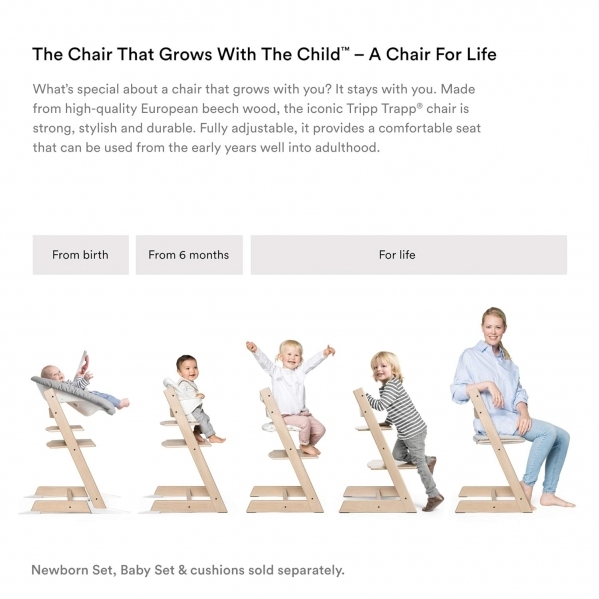 Made to fit right up to your dining table, the Tripp Trapp high chair brings your baby into the heart of meal time, allowing your little boy or girl to eat, learn, play and grow alongside you. can hold up to a 242lb adult. Make lasting memories for years to come with Tripp Trapp,
