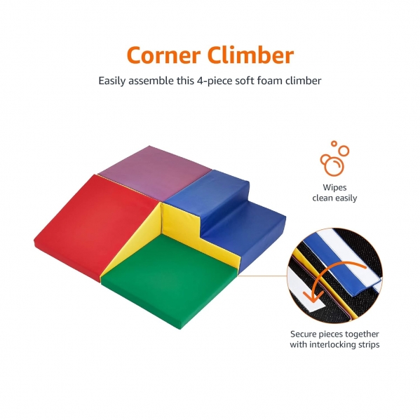 Amazon Basics Kids Soft Play Corner Climber, 4-Piece Corner Climber Red, Green, Blue, Yellow