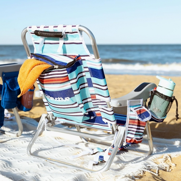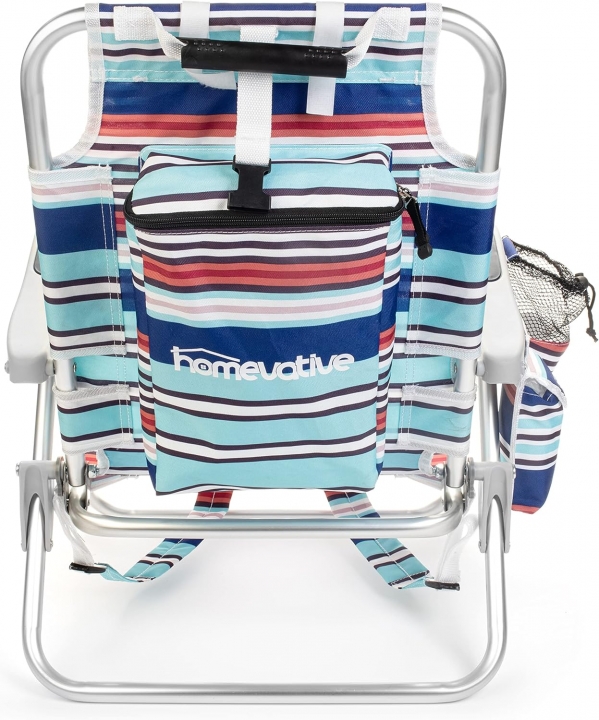 Rent Baby Gear INCLUDING Homevative Kids Folding Backpack Beach Chair with 4 Positions, Carry Handle, Storage Pouch, Cup Holder and Phone Holder, Lightweight Blue Lagoon | BabyQuip