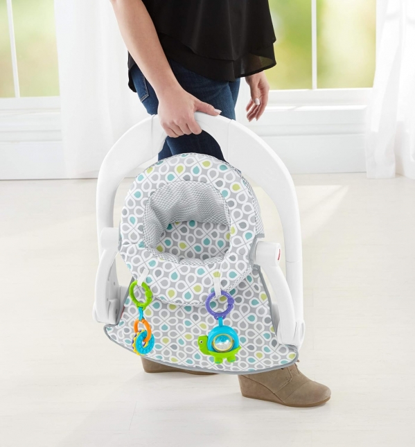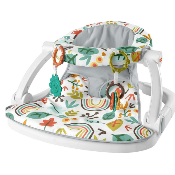 Style:Frustration-Free PackagingThe Fisher Price Sit Me Up Floor Seat is cute, convenient, and it helps support little ones as you sit them up to interact with the world around them (Hello, world.). The soft fabrics and wide base help little ones relax in cushy comfort. And the best part? It folds flat making it easy to store or take with you on the go. Your little one will love playing with the linkable toys (they're turtle y cute.), and you'll love how easy it is to clean just remove the seat pad and pop it in the washing machine. Where development comes into play; Security & Happiness: A comfy and supportive upright seat on a wide, sturdy base lets your baby see and interact with their surroundings. Gross Motor: As babies reach for the linkable toys and pull them up, they're helping to strengthen their gross motor skills. Curiosity & Discovery: Two linkable toys within reach to teethe, clack & spin help keep your baby entertained at home or on the go.
