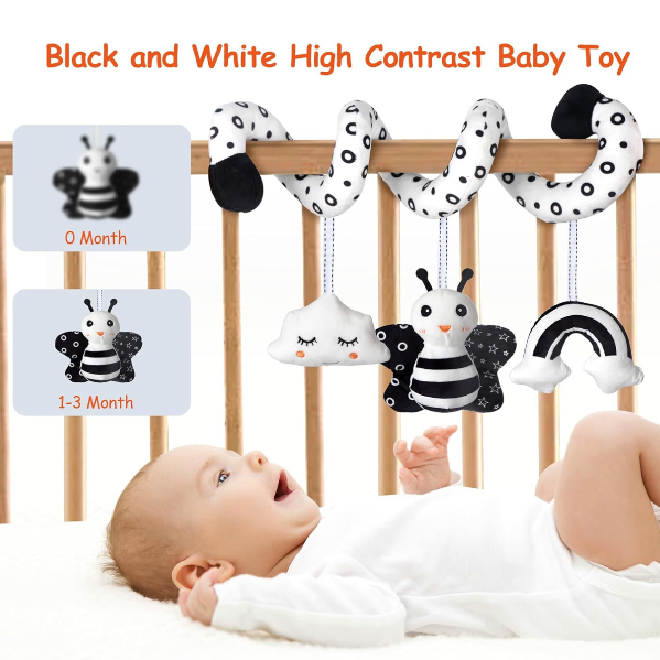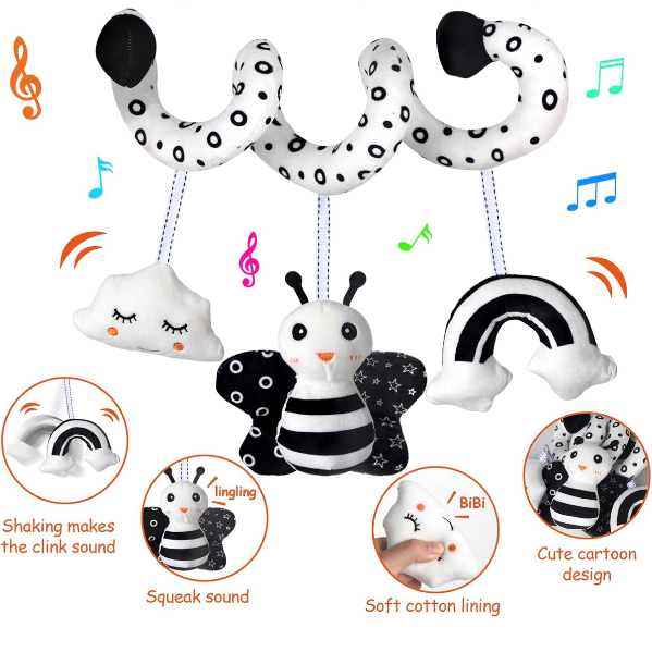 On-the-go Spiral Activity Toys - Easy to packed and take it on the go. Just spiral across the baby stroller or baby carseat and easy to stay put. Sounds and adorable plush keep baby entertained while awake and in the road trip.