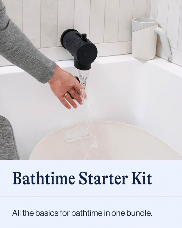 Rent Baby Gear INCLUDING Lalo Bathtime Kit - Modern Baby Bathtub, Rinse Cup & Spout Cover Bundle, Safe & Clean Design for Newborns, Minimalist Design, Easy to Clean, 25.3 x 18 x 7.7 in, 10 lb - Coconut | BabyQuip