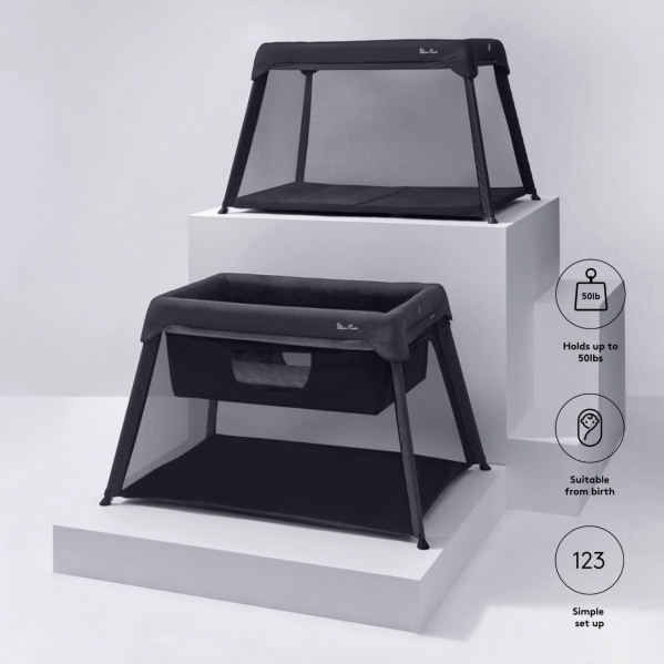 The Silver Cross Sleep & Go is an award-winning, luxury 3-in-1 travel crib, bassinet, and playard that adapts as your child grows—from newborn to toddler (up to 50 lbs). It includes a zip-in newborn bassinet for early months, converts into a toddler crib, and becomes a safe, fun play space with a zip-open door.