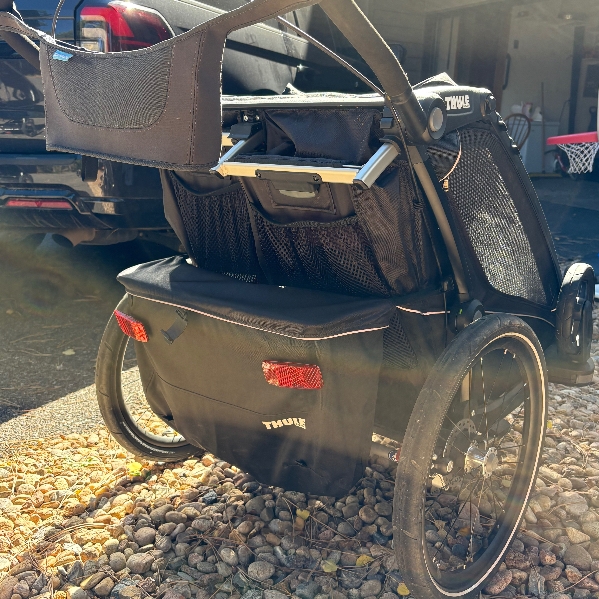 Great double stroller. Perfect for around Evergreen lake or Elk Meadow. Can easily hitch onto a bike too