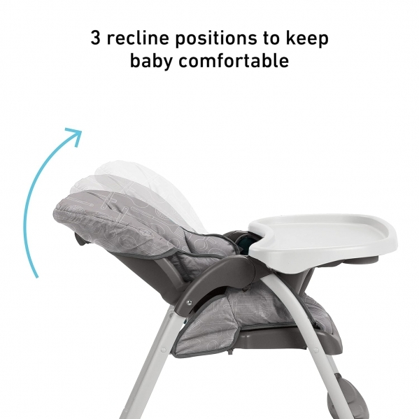 Graco's Slim Snacker is the ultra-fast folding high chair, with a one-hand, one-second fold. Moms (and dads. ) will love how easy it is. Once folded, it's ultra-compact, so this space saver high chair fits in small spaces and is self-standing for easy storage. Cleaning this baby high chair is a snap too - just wipe the seat pad down to keep your child's dining space tidy. A large mesh storage basket for your child's favorite things and a full-sized cup holder keep it convenient, while the three-position reclining seat, footrest and seat pad keep your child comfy during meals and snacks. Convertible 3- and 5-point harness keeps baby secured.