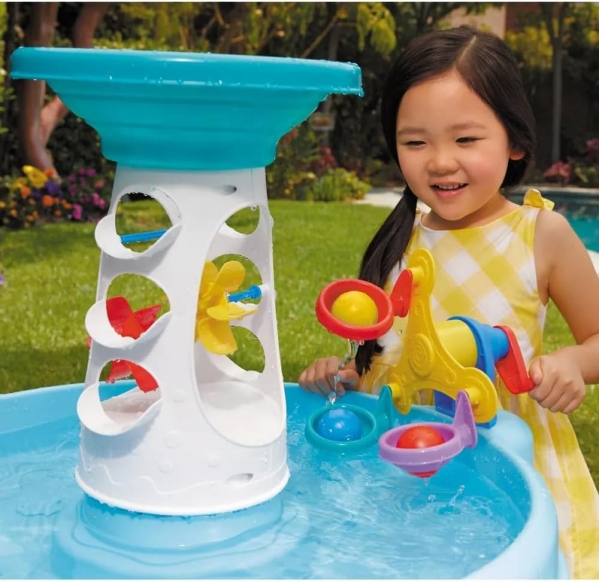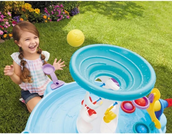 Kids will love pouring water, watching the colorful wheels spin, and sending balls down the spiraling tower into the water below. The engaging design encourages hands-on play while helping little ones explore cause and effect through water movement.