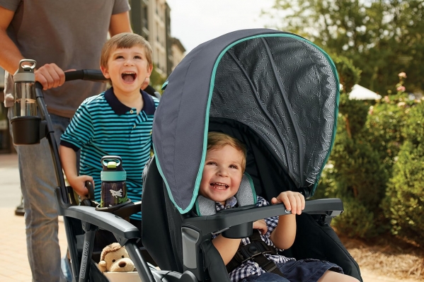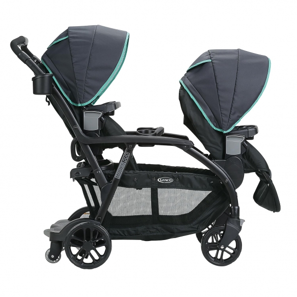 PRODUCT DESCRIPTION Color:BasinThe Graco Modes Duo double stroller is extremely versatile! With 27 riding options, from infant to youth, you can configure this stroller for the best fit for your growing family. The Graco Modes Duo Stroller accepts TWO Graco Click Connect Infant Car Seats, connecting with a secure one-step attachment. It has a standing platform and bench seat for your older child, and two reclining, removable seats that allow for stroller customization. Convenience and comfort features include locking front swivel wheels for increased maneuverability, extra platform wheels, one-handed standing fold, and pivoting child's arm bar with cupholders. The Graco Modes Duo Stroller helps you get the most out of every ride!. To clean stroller frame and seat pad, spot clean using mild soap and warm water. Never use bleach. Use light oil if wheels squeak. Child Occupancy Max: 2, Front Seat: Up to 50 lb, Rear Seat: Up to 50 lb. Folded Height- 50.5 inches Folded Width- 24 inches. SPECIFICATIONS: Stroller Depth: 46 inches; Stroller Weight: 42 pounds; Stroller Width: 25.5 inches; Stroller Height: 45 inches; Stroller Rear Wheel Size: 8.5 inches; Stroller Front Wheel Size: 7.5 inches.
