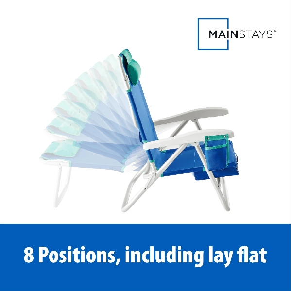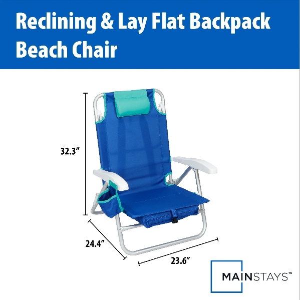 • Mainstays Reclining and Lay Flat Backpack Beach Chair:
