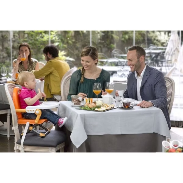 The Pocket Snack is designed to be used only on dining chairs. The two straps and rubberized feet secure Pocket Snack to the dining chair.