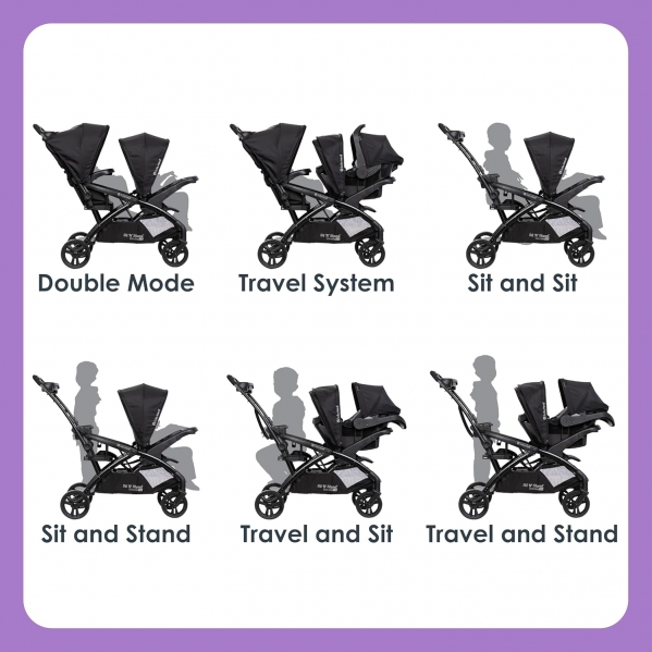 Rent Baby Gear INCLUDING Baby Trend Sit N' Stand® Double 2.0 Stroller, Dash Grey | BabyQuip