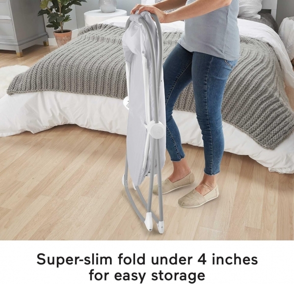 The Fisher-Price Soothing View Bassinet is the perfect portable cradle for sweet dreams anywhere you and baby go. With a light push from you, the portable cradle gently rocks to help soothe baby to sleep. The bassinet's sides have breezy mesh and the feet lock for stationary sleeping. When it's time to pack up and go, the cradle easily collapses to a super-slim fold of under 4 inches! Use only with a child who is unable to push up on hands and knees, pull up or sit unassisted.