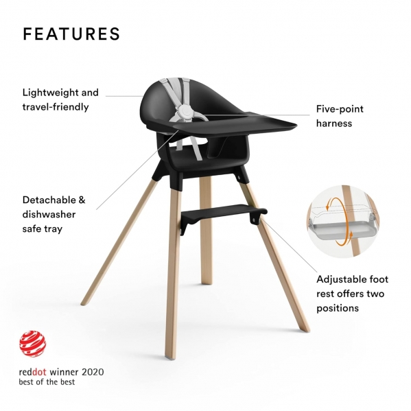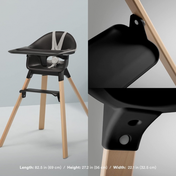 Stokke Clikk High Chair, Black Natural - All-in-One High Chair with Tray + Harness - Light, Durable & Travel Friendly - Ergonomic with Adjustable Features - Best for 6-36 Months or Up to 33 lbs