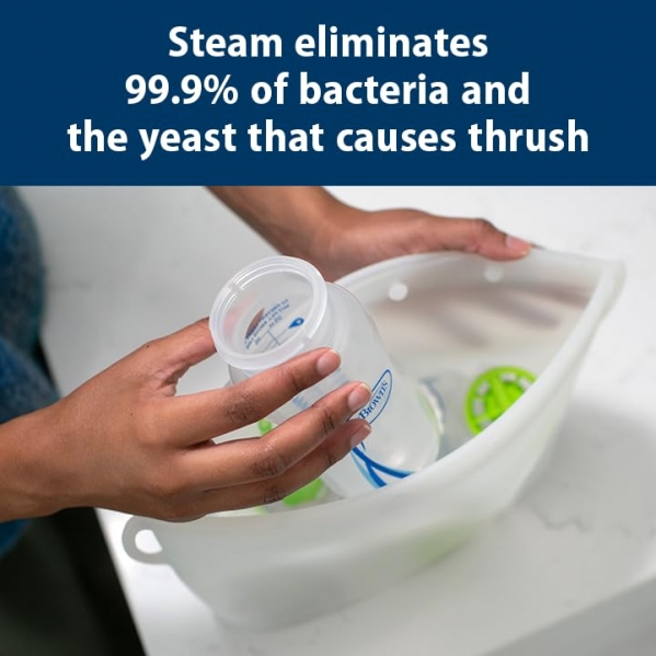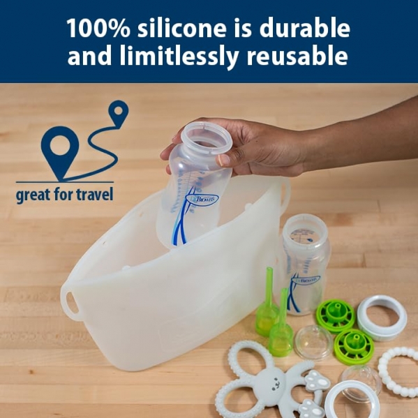 Dr. Brown's Microwave Steam Sterilizer Bag for Baby Bottles, Breast Pump Parts & Other Toddler Accessories, 100% Silicone, Reusable Sterilizing Bag