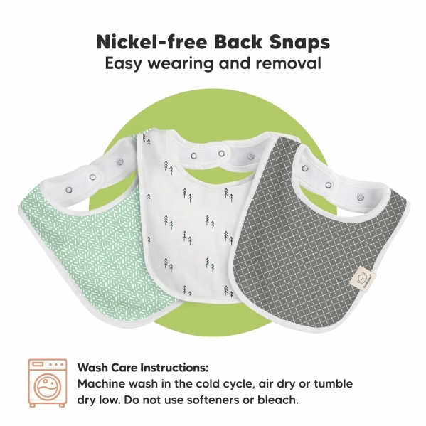 Each rental includes four bibs selected from the KeaBabies Nordic Collection, featuring a mix of muted neutrals and minimalist prints that coordinate beautifully with any outfit, for boys or girls ages 0–24 months. Adjustable nickel-free snap closures provide a secure fit from newborn through toddlerhood, and the lightweight materials make them easy to layer under jackets or sweaters.