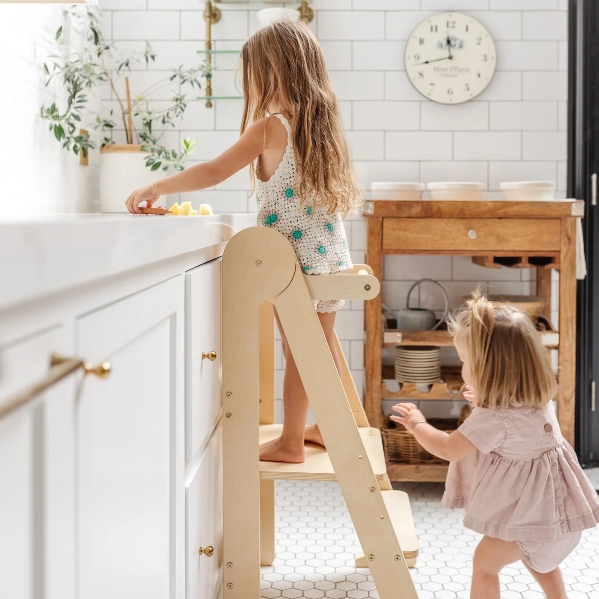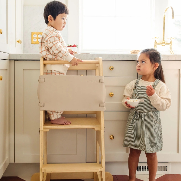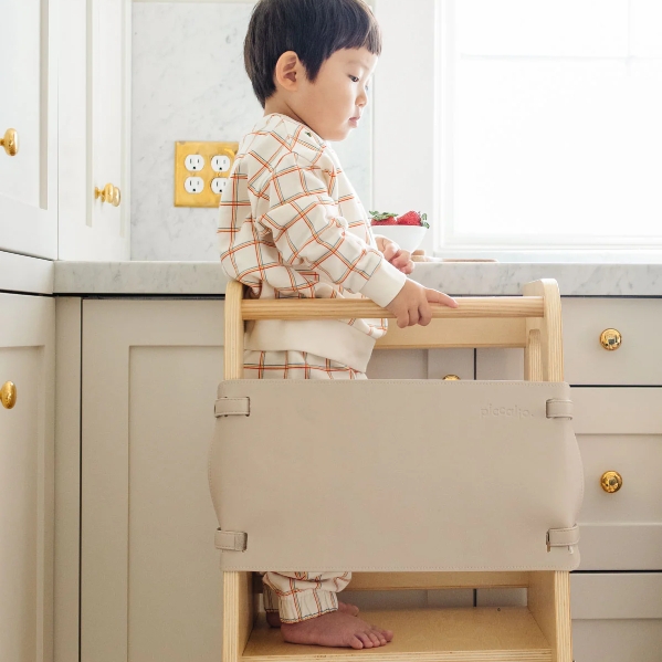 Invite your little one to safely join you at counter height with the Piccalio Mini Chef Foldable Helper Tower. Beautifully crafted from FSC-certified birch and New Zealand pine, this thoughtfully designed tower offers sturdy, stable support for toddlers eager to help prepare meals, wash hands, or explore new activities alongside caregivers.