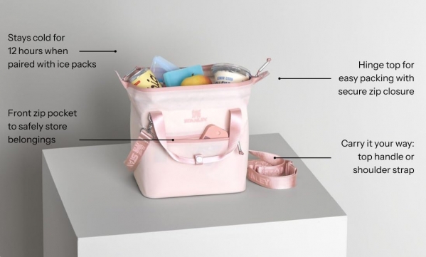 Your rental includes: Stanley All Day Julienne Mini Cooler Bag in Toast, plus one Below Zero Deluxe Stainless Steel Cooling Pack—thoroughly cleaned and sanitized between uses—ready to keep milk and refreshments cool wherever your Bainbridge adventures take you.