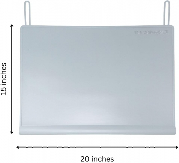 Your rental includes: one Table Tyke XL Silicone Non-Slip Placemat in Gray, freshly cleaned, sanitized, and ready for stress-free meals and activities—at the table or on the counter.