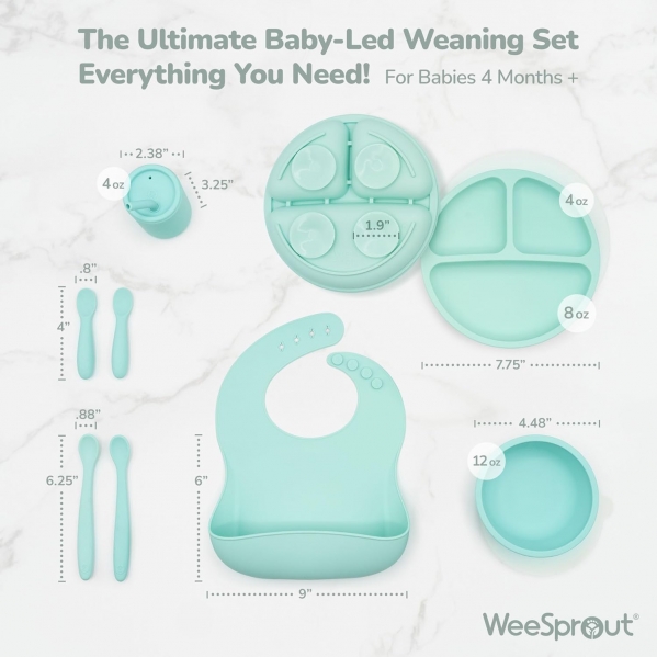 Empower your little one’s self-feeding journey with the WeeSprout Baby Led Weaning Bundle, a beautifully designed set made from 100% food-grade silicone. Soft yet durable, each piece is gentle on gums and developing teeth while offering a grippy, easy-hold texture perfect for fine motor skill development.