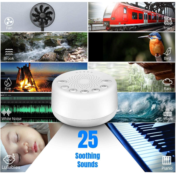 Easysleep Sound Machine / White Noise Machine with 25 Soothing Sounds and Night Lights with Memory Function 32 Levels of Volume and 5 Sleep Timer Powered by AC or USB for Sleeping Relaxation (White)