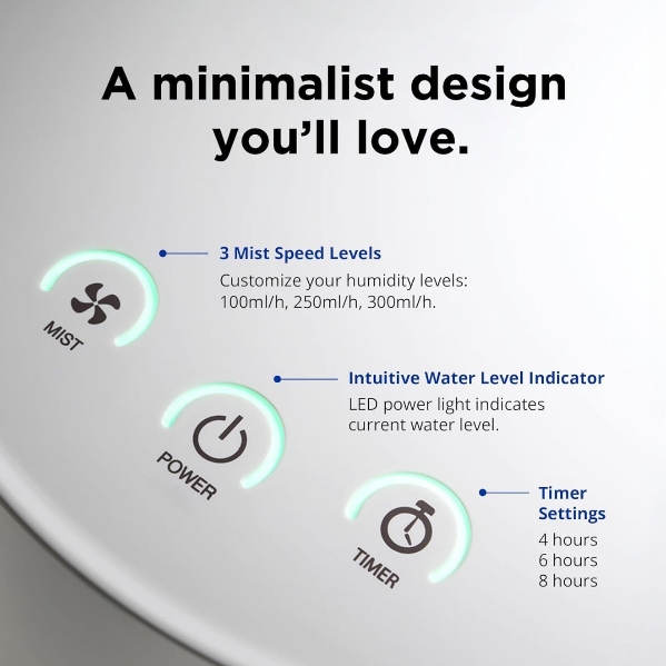 HEALTHIER AIR FOR YOUR FAMILY: Hydrate your air with a stainless steel humidifier. Relieve dry skin, allergies, and poor sleep with safe, clean mist for every room.