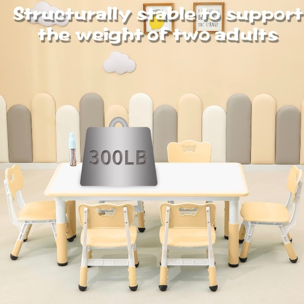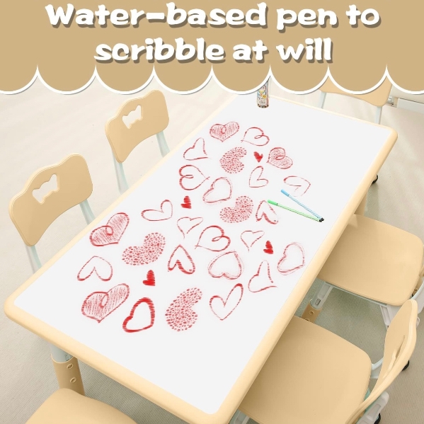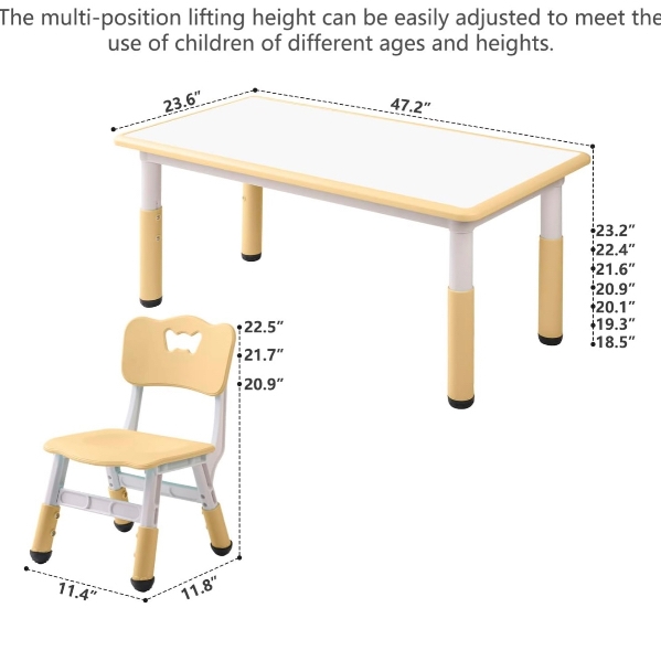 Made for growing kids:Table 5 is height adjustable from 18.9 to 23.6 inches, and chair 3 is adjustable from 20.8 to 22.4 inches. Both the table and chair are height-adjustable and can be easily modified with a screwdriver, and the table legs also feature horizontal slides for stability.